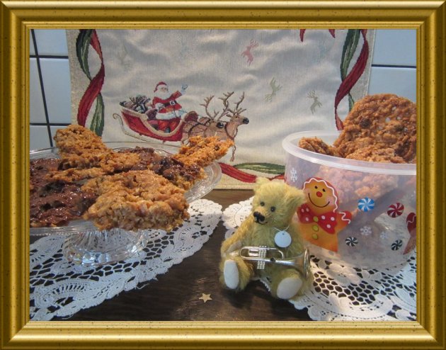 | Nach Belieben können die Kekse noch mit flüssiger Schokolade oder Puderzuckerglasur überzogen werden. | ||