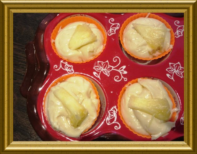 | Die Hälfte des crémigen Teiges in 12 grössere oder 24 kleine Muffinförmchen (Papier oder Silikon) verteilen.