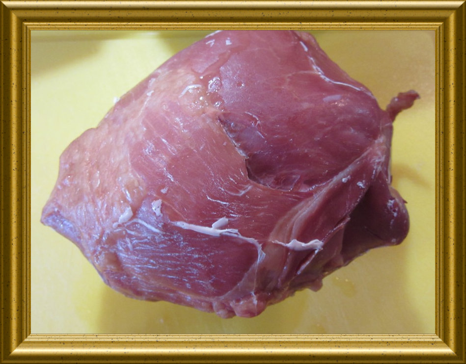 Hier das zarte Schulterstück vom Schwein, leicht gepöckelt.