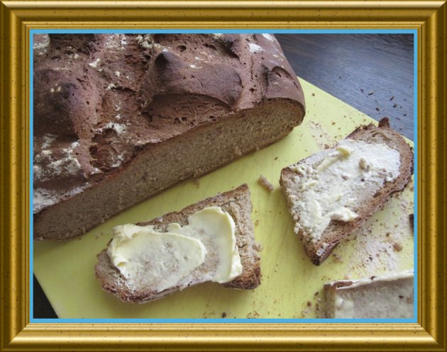 | Das Brot hält sich mehrere Tage! Es kann aber auch in Scheiben geschnitten eingefroren werden und in Scheiben wieder aufgetaut werden. So hat man Brot stets auf Vorrat. | ||
