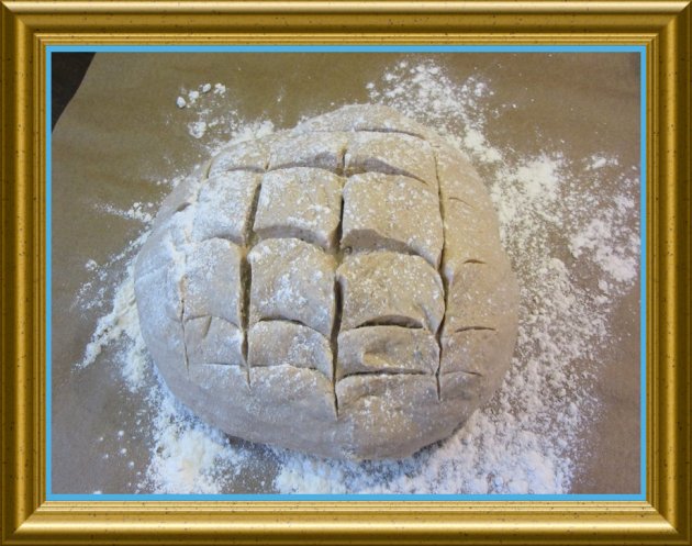 Das Laib nochmals 45 Min. bei ca. 40 °C gehen lassen. Danach das Brot etwas einschneiden und mit etwas |