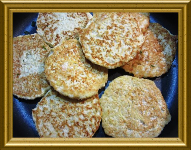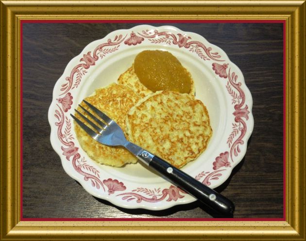 | Anschliessend die Puffer auf einem Küchenpapier vom Fett austropfen lassen. | ||