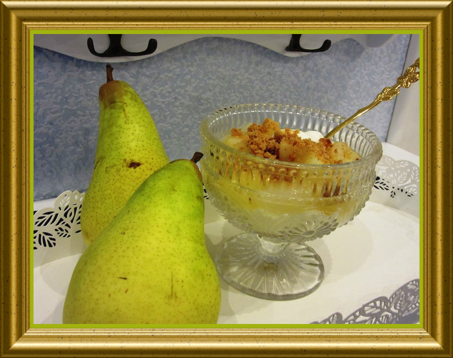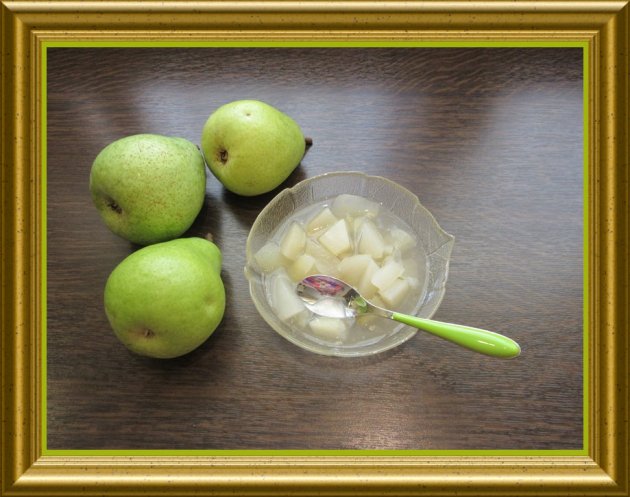 | 4 kleine Birnen aus der Region | schälen, vierteln, entkernen und fein würfeln. Mit | |