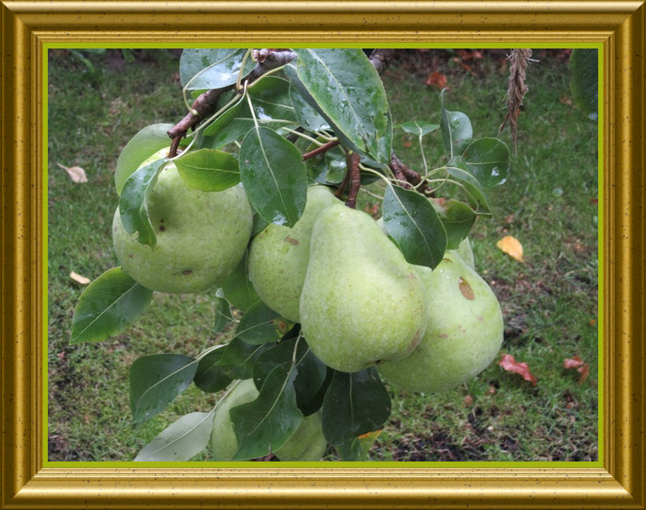 Grosser Katzenkopf (auch: Kronprinz Ferdinand, Schinkenbirne, Winterbutterbirne genannt), sie wurde bereits 1590 in fränkischen Baumschulen gezogen.
