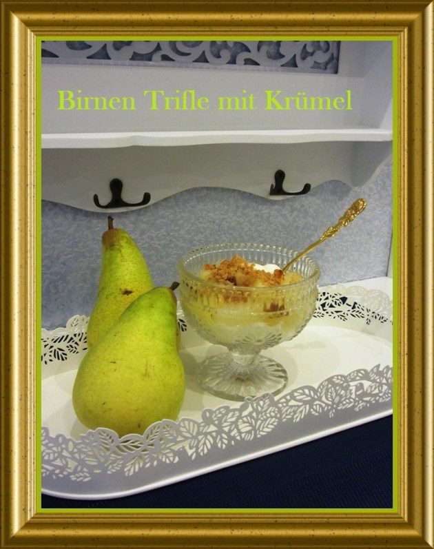 Trifle ist eine englische Süssspeise, bestehend aus mehreren Schichten aus Créme, Flammeri, Custard, Obst, Obstkompott, Konfitüre oder Marmelade, Biskuitkuchen, Keksbrösel und Schlagsahne.