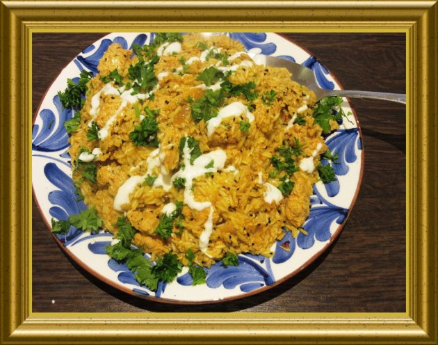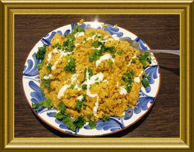 | Der Name Biryani stammt im Ursprung aus Persien und bedeutet einfach nur gebratener Reis. Im Gericht findet man Poulardenfleisch.