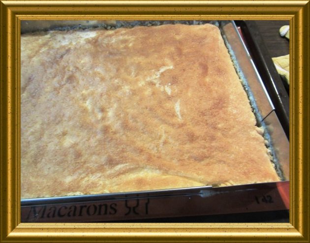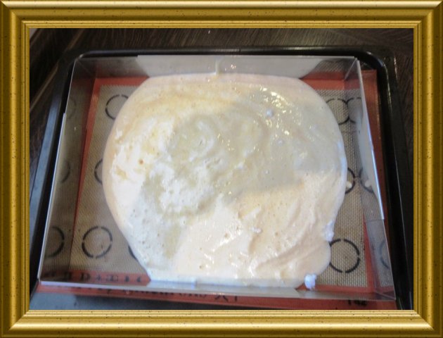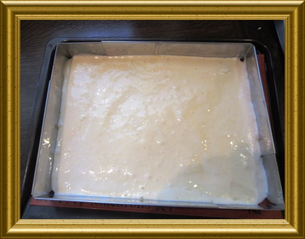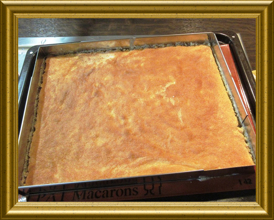 | Den abgebackenen Biskuitboden auf ein mit | ||