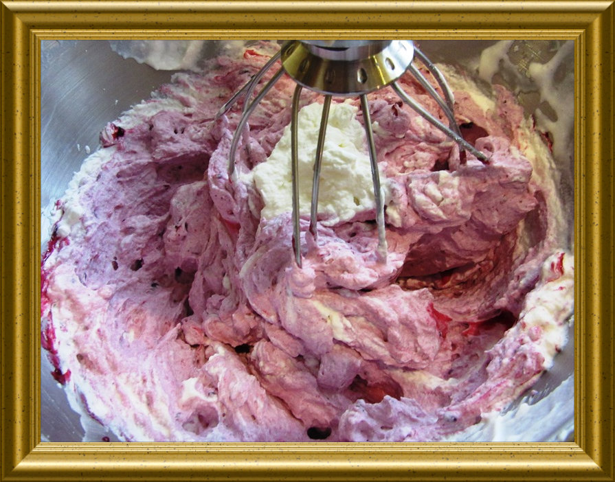 | 200 g schwarze Johannisbeerkonfitüre | unter die steife Schlagsahne heben. | |