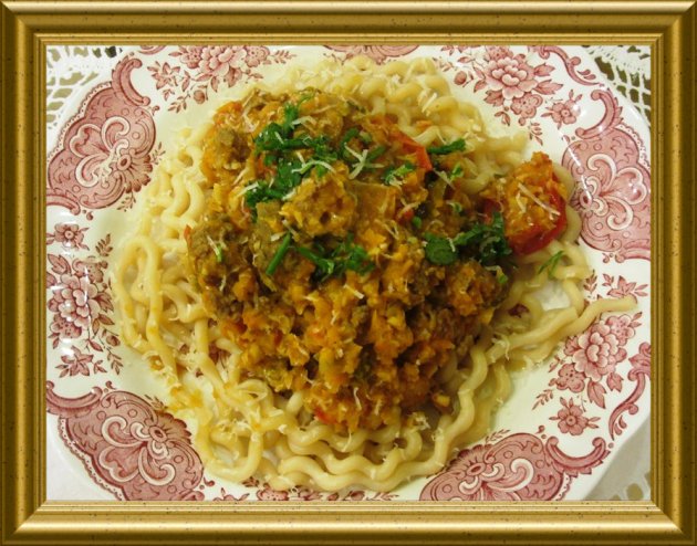 | Ich serviere zu dieser Bolognese selbstgemachte Teigwaren z.B. Fusilli Lunghi.