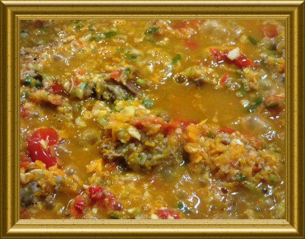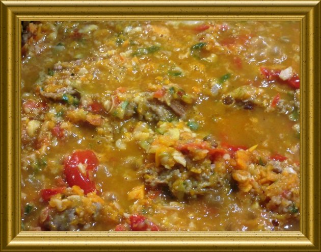 | 1/4 l Gemüsebrühe | dazugeben und alles zusammen ca. 45 Min. bei milder Hitze garen. | |