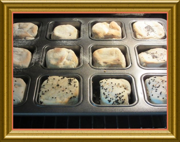 | Die Brötchen zum Abkühlen gleich nach dem Backen aus der Form nehmen. | ||