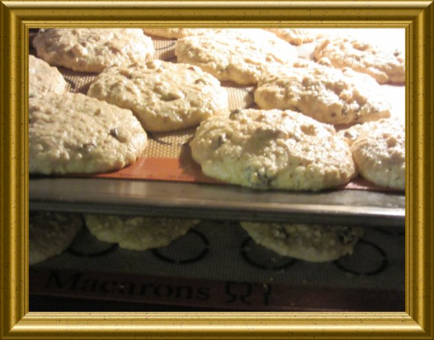 | Die Cookies auf den Backblechen entweder nacheinander bei Ober-/ Unterhitze zur Mitte des Backofens eingeschoben bei 160°C ca. 15 Min. abbacken