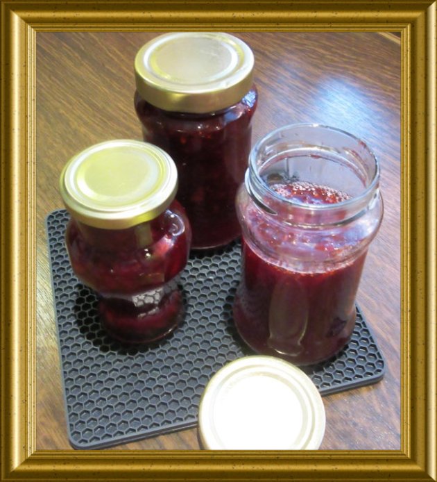 | Die heisse Fruchtmasse in die so vorbereiteten Gläser bis zum Rand füllen, sofort verschliessen. | ||