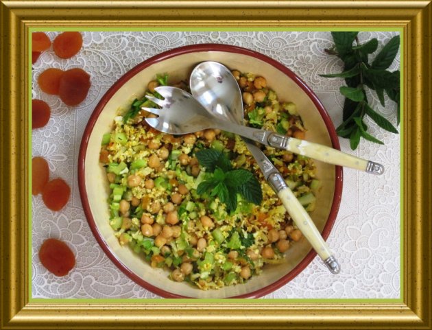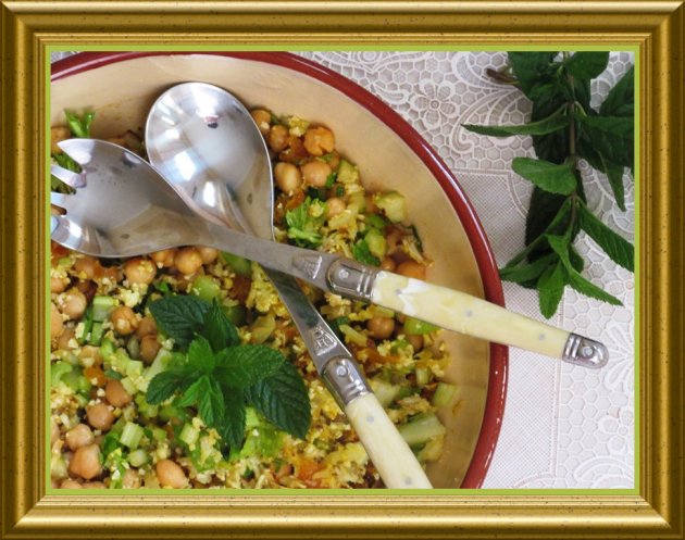 | 1 Dose Kichererbsen (ca.300 g) | durch ein Sieb giessen und unter den lauwarmen Blumenkohl geben. | |