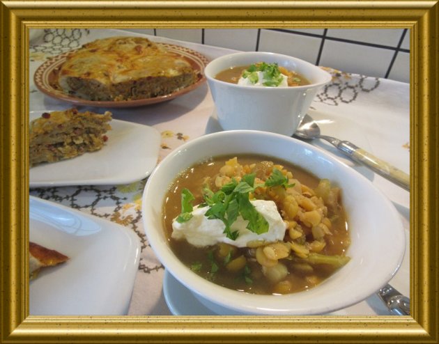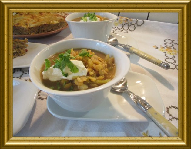 | Die Suppe in die Suppentassen gleichmässig verteilen und mit dem | ||