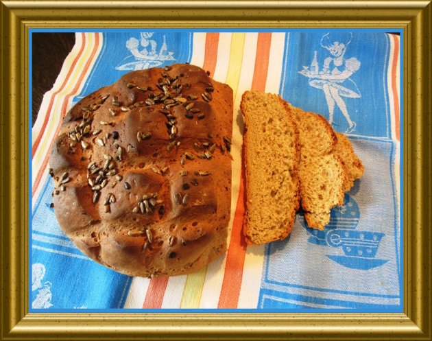 Es kann aber auch in Scheiben geschnitten eingefroren werden und in Scheiben wieder aufgetaut werden. So hat man Brot stets auf Vorrat. |
