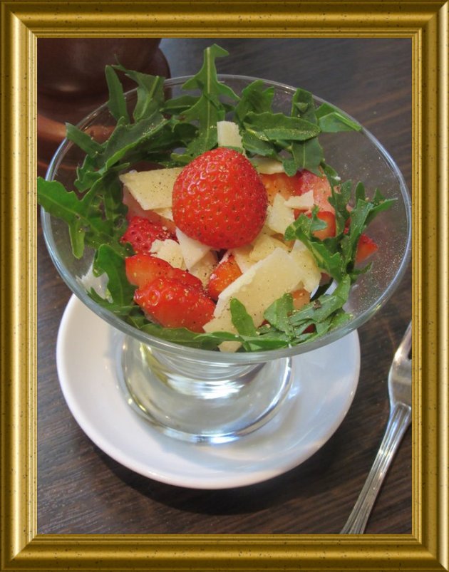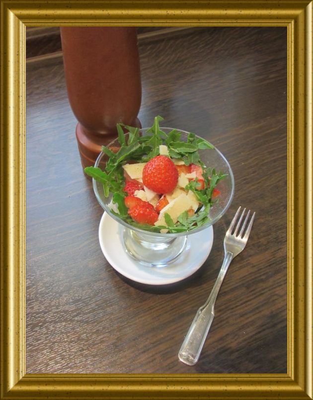 Hier ein ganz schnelles Rezept. Der Salat eignet sich sehr gut als Vorspeise. Wichtig ist, dass reife, aromastarke Erdbeeren verwendet werden. |