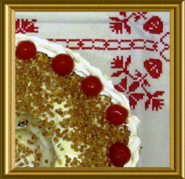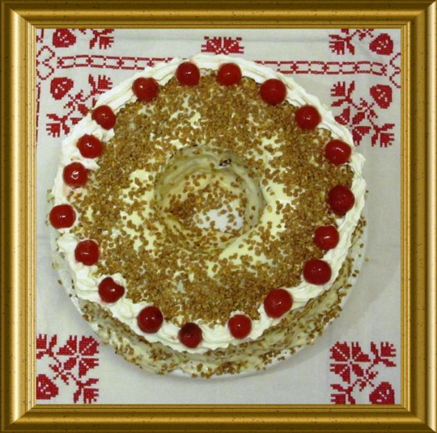 Nach Belieben die Böden mit Preiselbeerkonfitüre bestreichen! Die Böden kann man auch mit Himbeergeist oder Kirschwasser leicht tränken. |