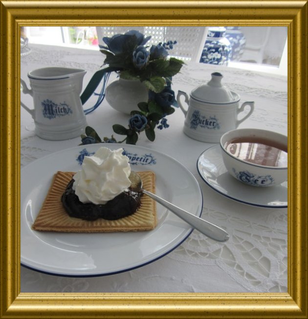 | Schlagsahne | garniert man auf die Waffeln. | |