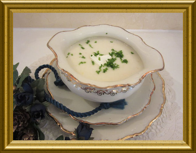 aufgelöst hat. Keine Kümplchen dürfen entstehen. Die Grundsuppe sollte cremig sein. |