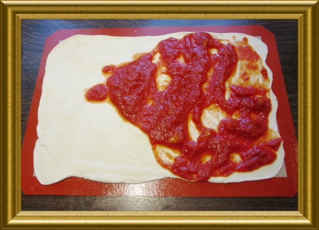 | 1 Pizza Teig | nach dem Grundrezept zubereiten.