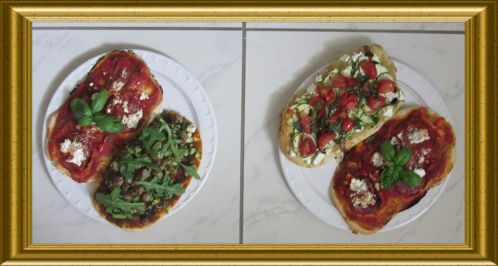 Man kann auch nach Belieben kleine runde Pizzen formen. |