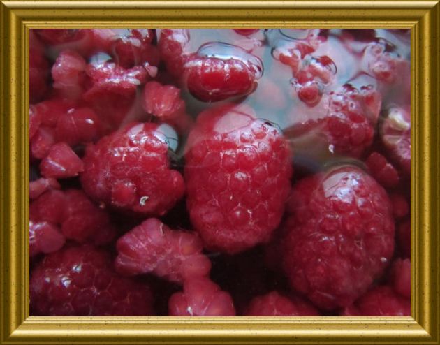 | 300 g TK-Himbeeren | hinzugeben und alles bei milder Hitze unter rühren 3 Min. köcheln lassen. Die Himbeeren sollten danach zerfallen sein. | |