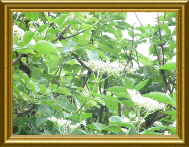 | 2 Handvoll Holunderblüten ca. 5 Dolden | verlesen und die Blätter entfernen und mit der in Scheiben geschnittenen | |