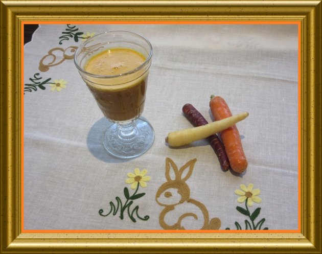 | 100 ml Möhrensaft | in einen hohen Mixbecher geben und mit | |