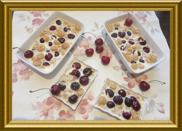 Die Förmchen mit dem Kirschmichel ca. 30 Min. so stehen lassen. Jetzt kann alles gut durchweichen. |