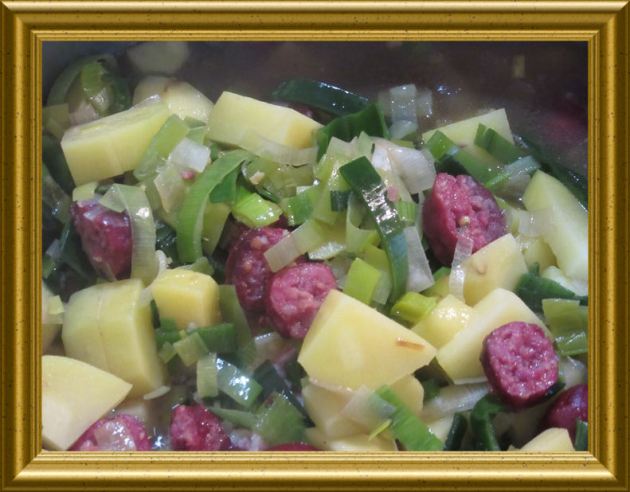 Der Eintopf kann auch mit Brühwurst zubereitet werden. |