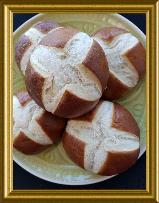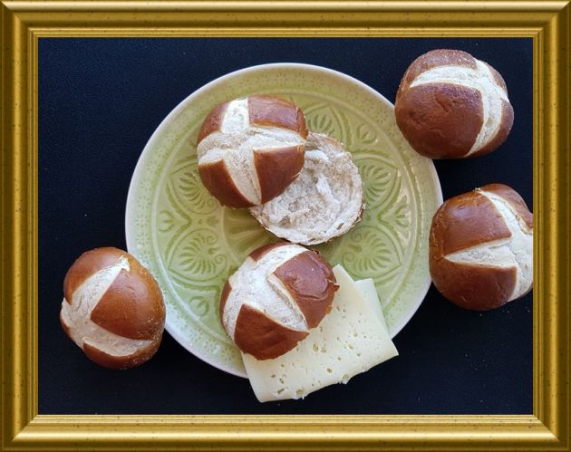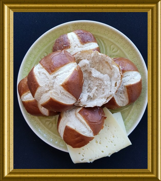 | 4 EL Natron (gestrichene EL!) | hinzufügen. Die Teigbrötchen einzeln auf einen Schaumlöffel setzen und in die Lauge geben. Die Teigbrötchen etwa 30 Sekunden unter Wenden ziehen lassen. Die Brötchen schnell herausnehmen und gut abtropfen. | |