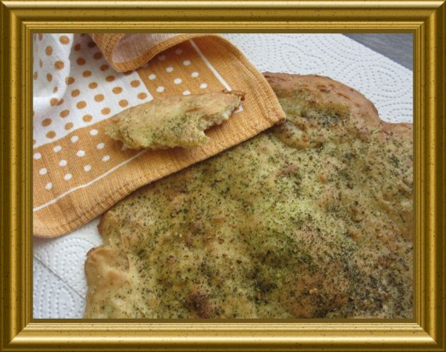 | Das Fladenbrot nun zur Mitte des Backofens auf dem Backblech einschieben und bei 200 C Ober-/ Unterhitze ca. 18 Min. backen. | ||