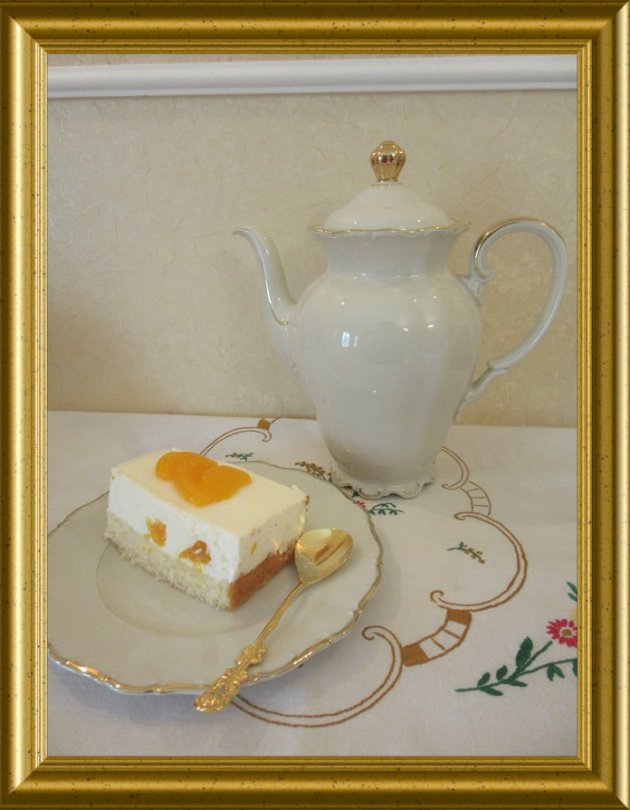 | Den Biskuitboden gut auskühlen lassen. Eine viereckige Randform um den Biskuitboden setzen. | ||