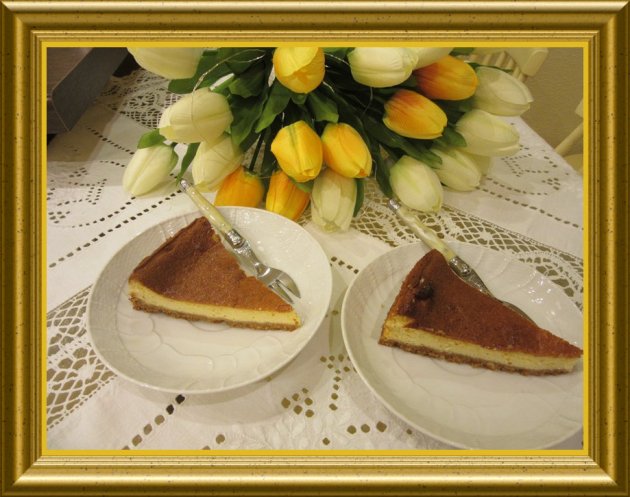 | Den Cheesecake bei 150 °C Ober- / Unterhitze ca. 75 Min. bzw. bei 130 °C Umluftbetrieb ca. 65 Min. goldgelb backen.