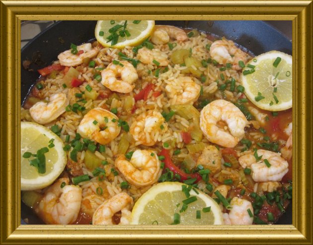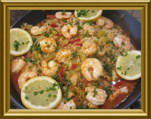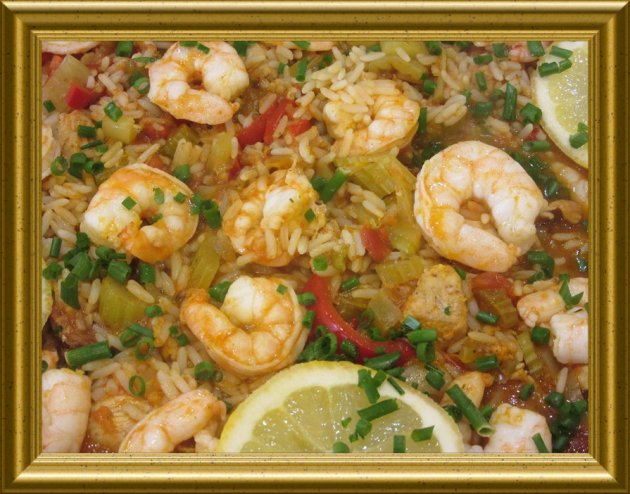 Zwiebeln, milder Paprika und Staudensellerie. Es gibt unterschiedlichste Jambalaya Variationen je nach Region. Hier eine klassische Variante mit Hähnchenfleisch, scharfer Chorizo Wurst und Garnelen aus der Region New Orleans. |