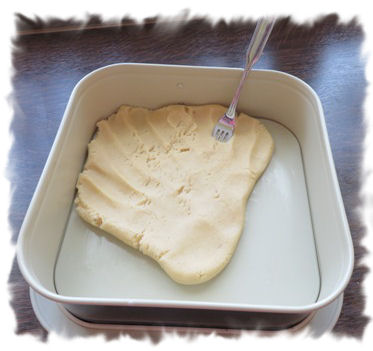 ( 24 x 24 cm) auf dem Boden verteilen. Mit einer Gabel den |