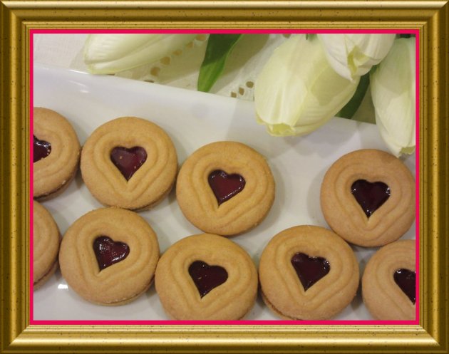 | Es kann natürlich jedes beliebige Gelee verwendet werden. Versuche die Plätzchen doch auch einmal mit Zitronen- / oder Orangenmarmelade. | ||
