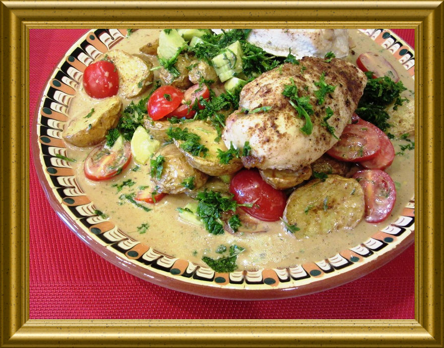 Orientalischer Kartoffelsalat mit Dukkah-Hähnchen |