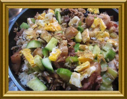 Asiatischer Reis mit Schweinebauch aus dem Wok
