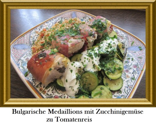 Bulgarisches Medaillions mit Zucchinigemüse zu Tomatenreis