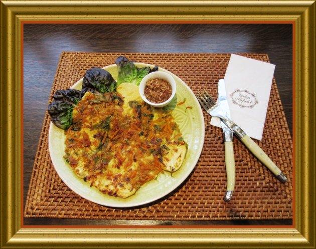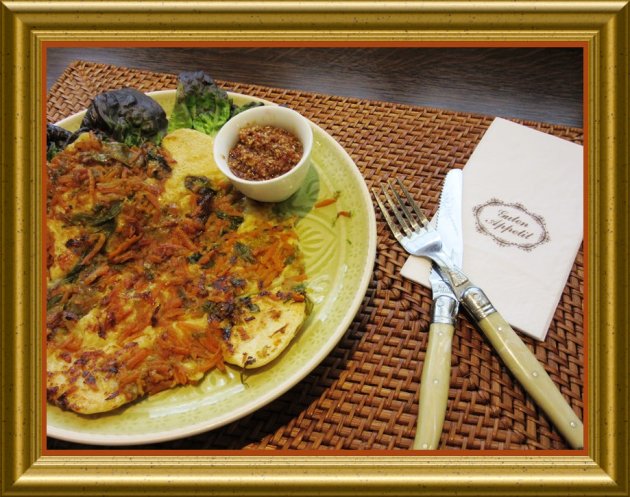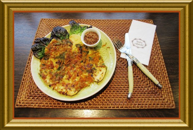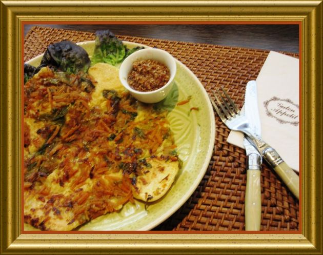 Pak-Choi-Möhren Pfannkuchen mit Sesam-Dip |