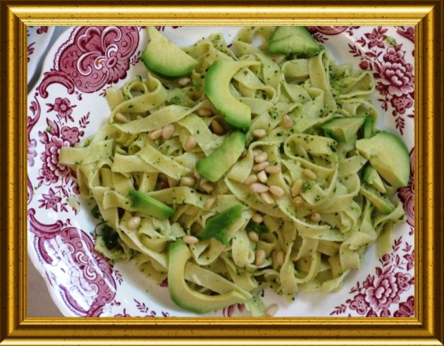 | Das Pesto zu den heissen Bandnudeln geben, untermischen und alles zugedeckt 3 Min. ruhen lassen. | ||