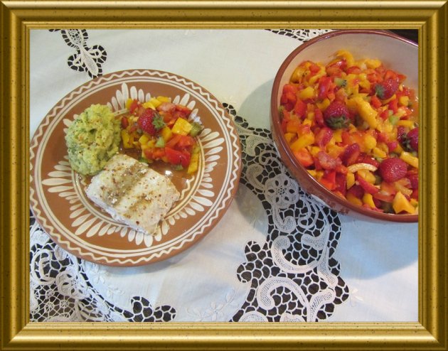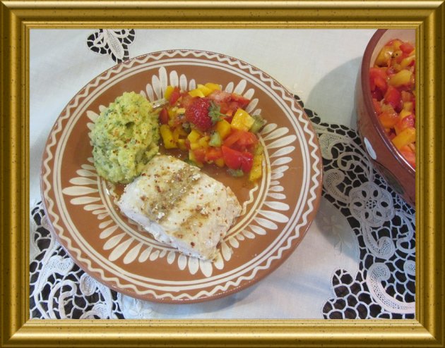 | Das Fischfilet auf dem fruchtigen Gemüsesalat anrichten | ||