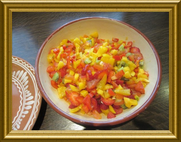 | 1 gelbe Paprikaschote | entkernen und in feine Würfel schneiden. | |