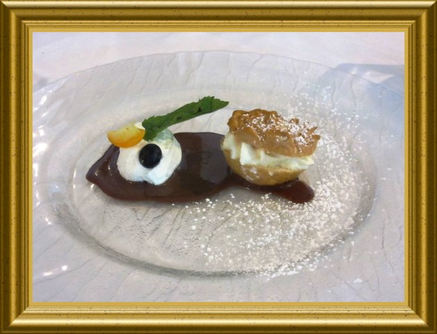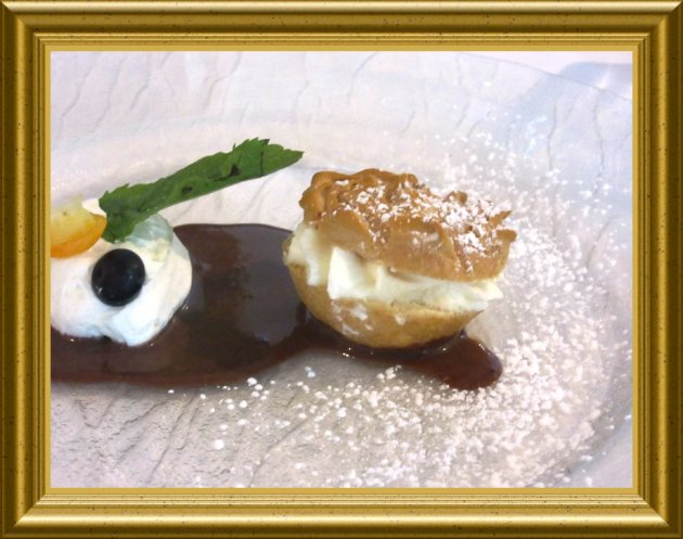 | Ein Profiterole, Windbeutel oder Chou à la Crème ist eine gefüllte französische Brandteigkugel mit einer süssen Füllung.