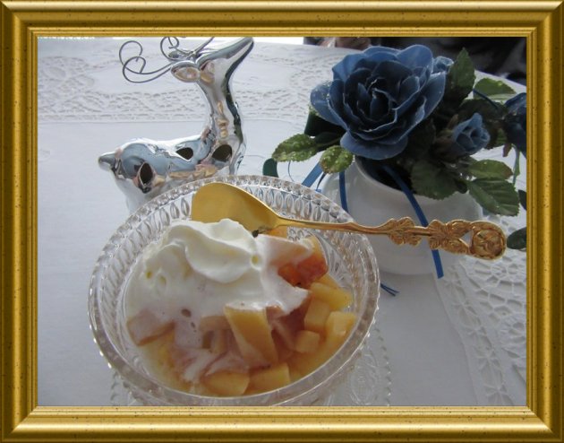 | Das Kompott passt sehr gut zu Vanilleflammerie, Vanilleeis und Schlagsahne. | ||