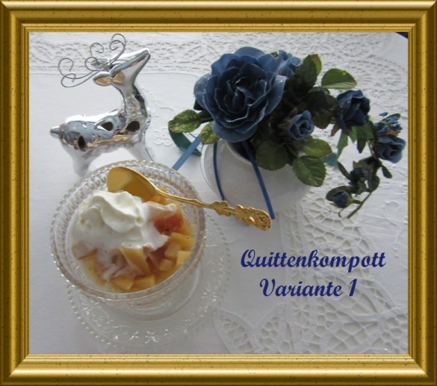 | drei Nelken | aufkochen. Die Quitten in den Sud geben und unter ab und zu Rühren etwa 20 Min. garen. Sie sollten nicht zerfallen.