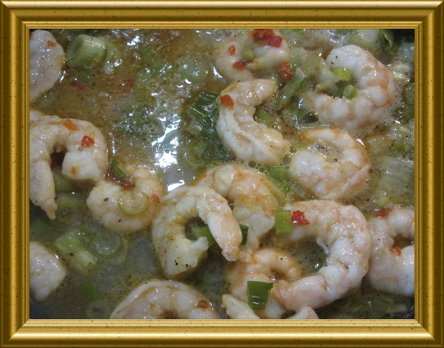 | 200 g Garnelen ohne Kopf oder Shrimps | vorbereitet (d.h. entdarmt und gewaschen) für ca. 1 Std. mariniert.