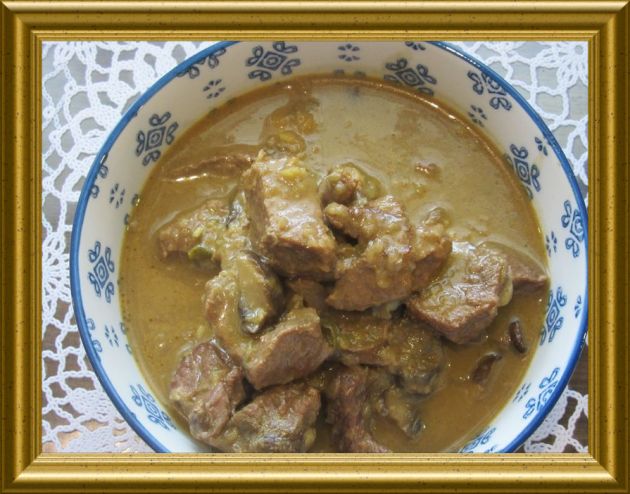 | Die Gewürzpaste zum Gulasch geben. | ||